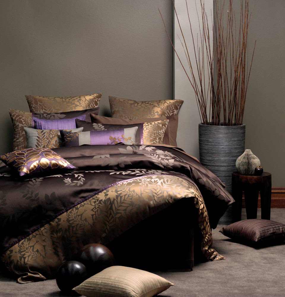 A jacquard bed linen design featuring art nouveau inspired botanical motifs.
