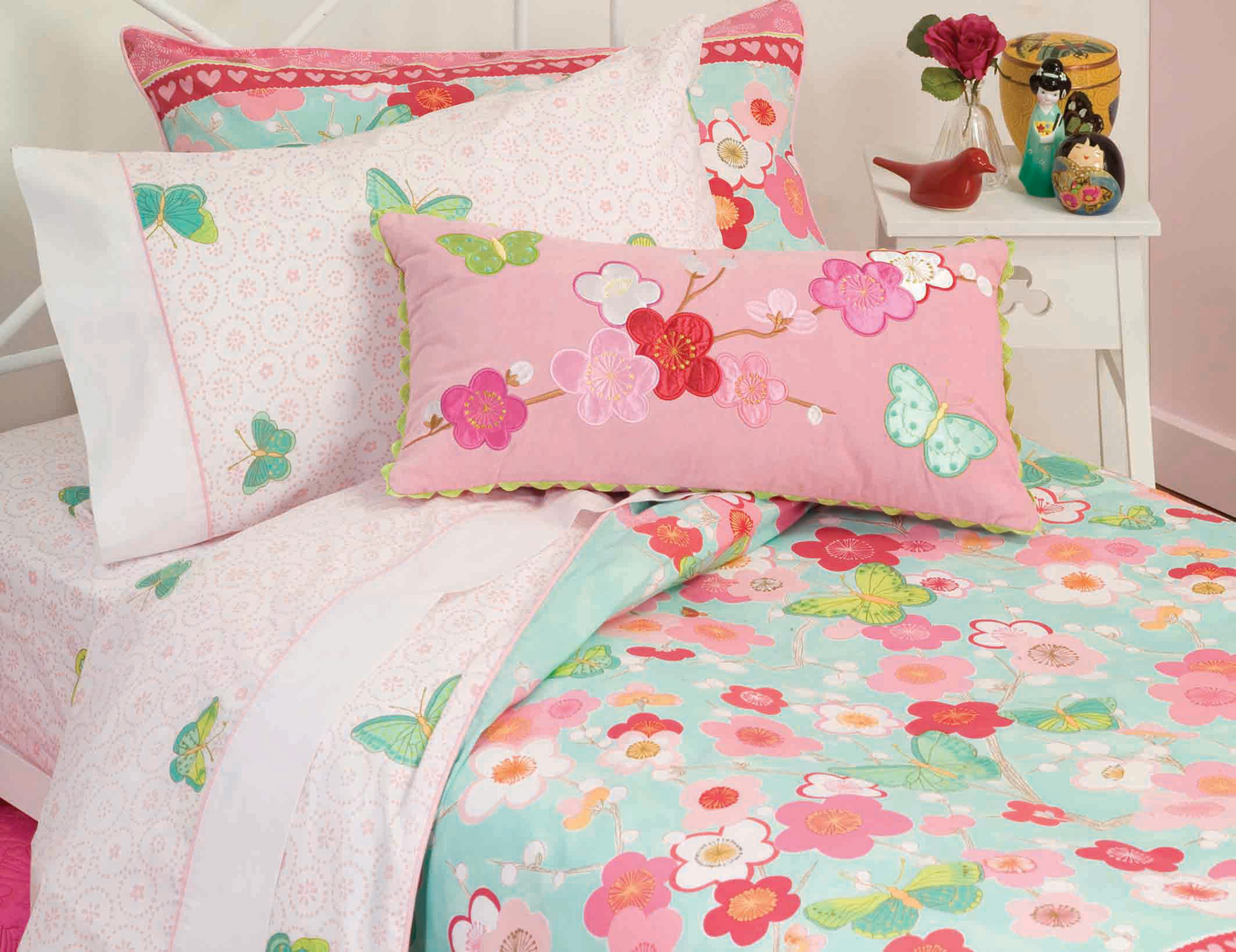 Japan's springtime cherry blossoms were the inspiration for this water colour design for bed linen.