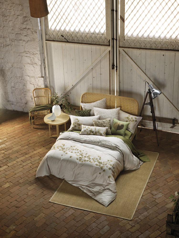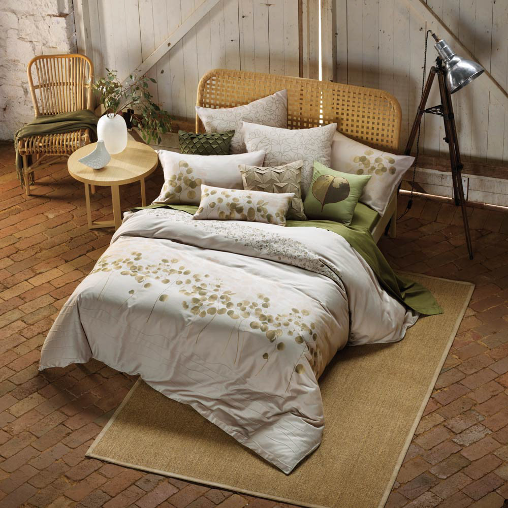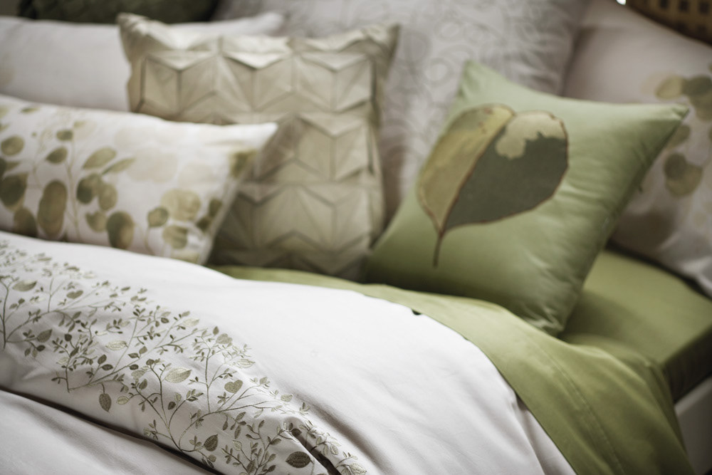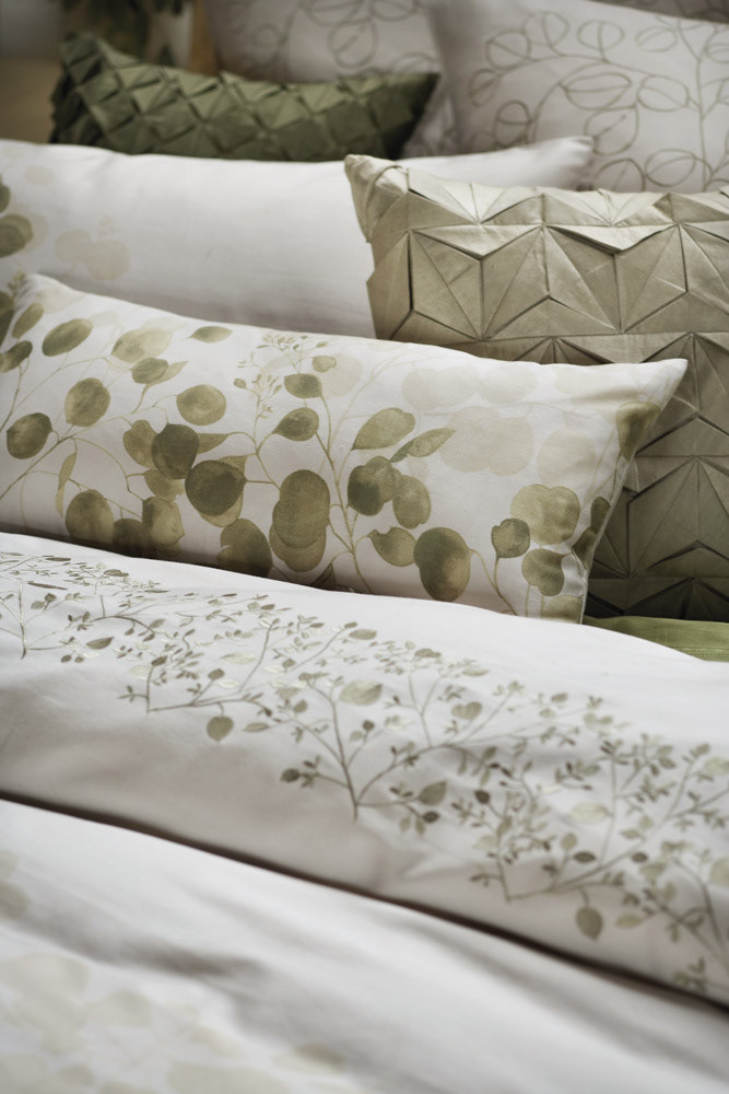 A print and embroidered bed linen design with co-ordinating accessories for the Linen House brand.