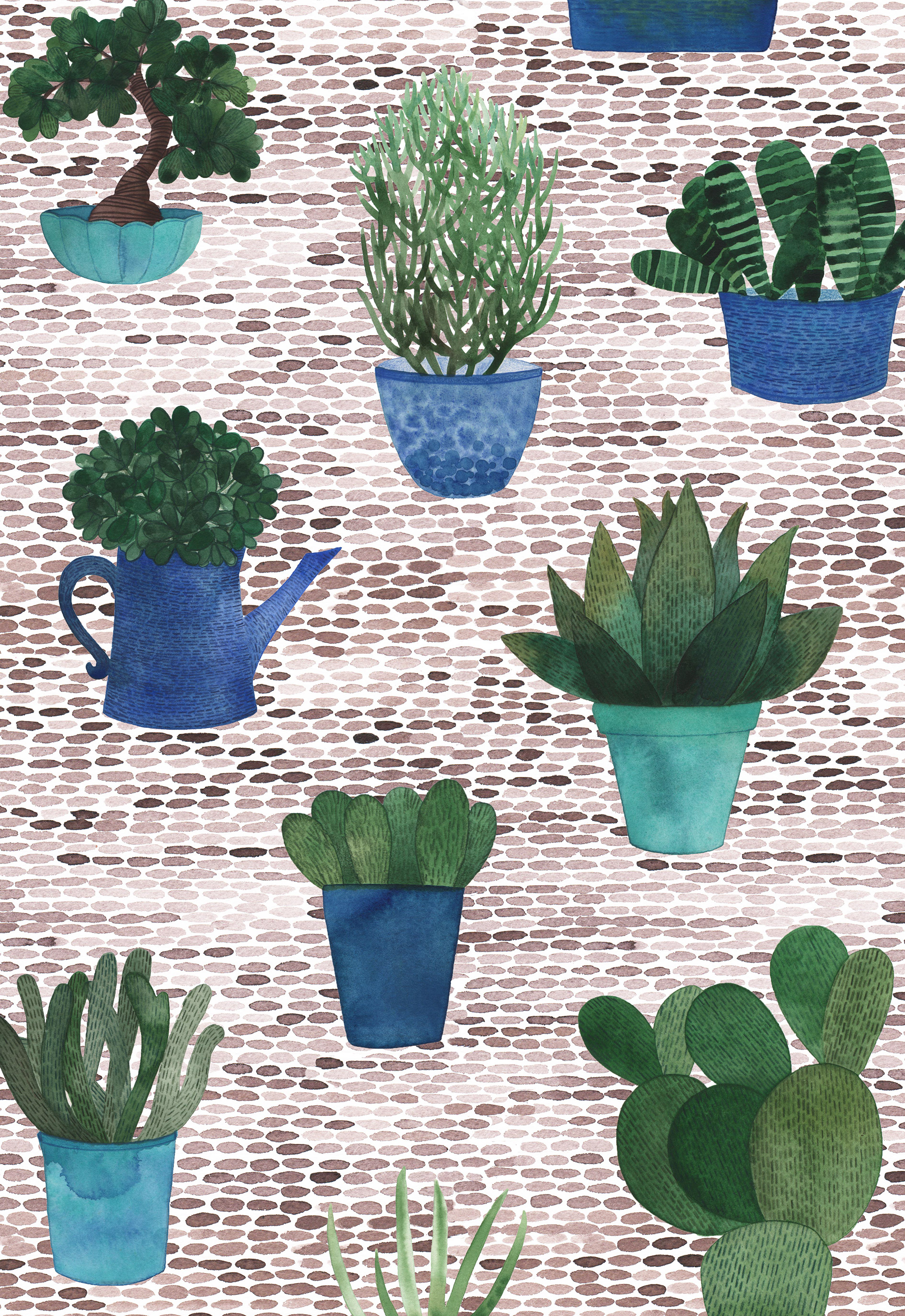 A collection of pot plants from my front veranda, and a leafy green coordinate design.