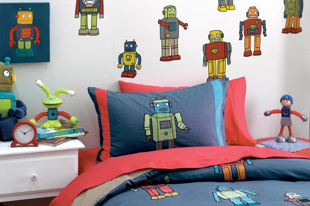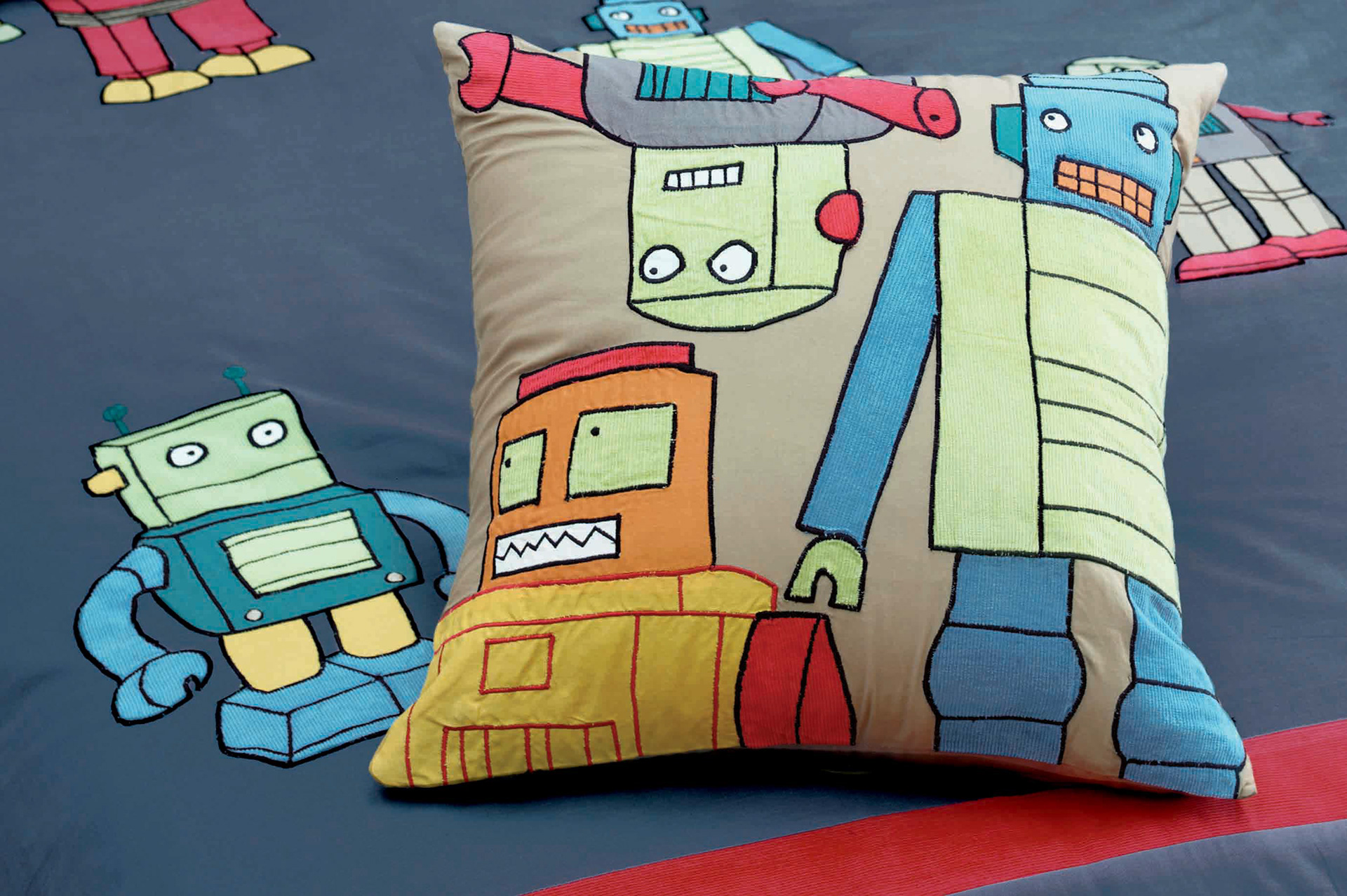 An applique bed linen design for the Hiccups Linen House for Kids collection.
