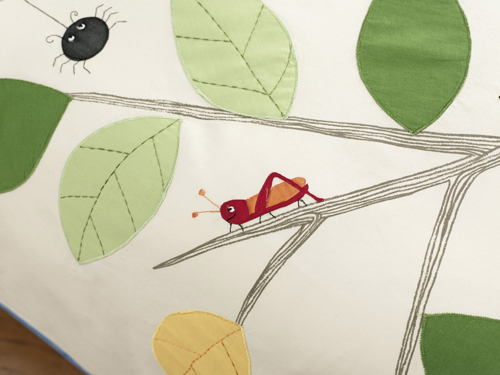 Appliqued and embroidered critters are hiding in this tree habitat.